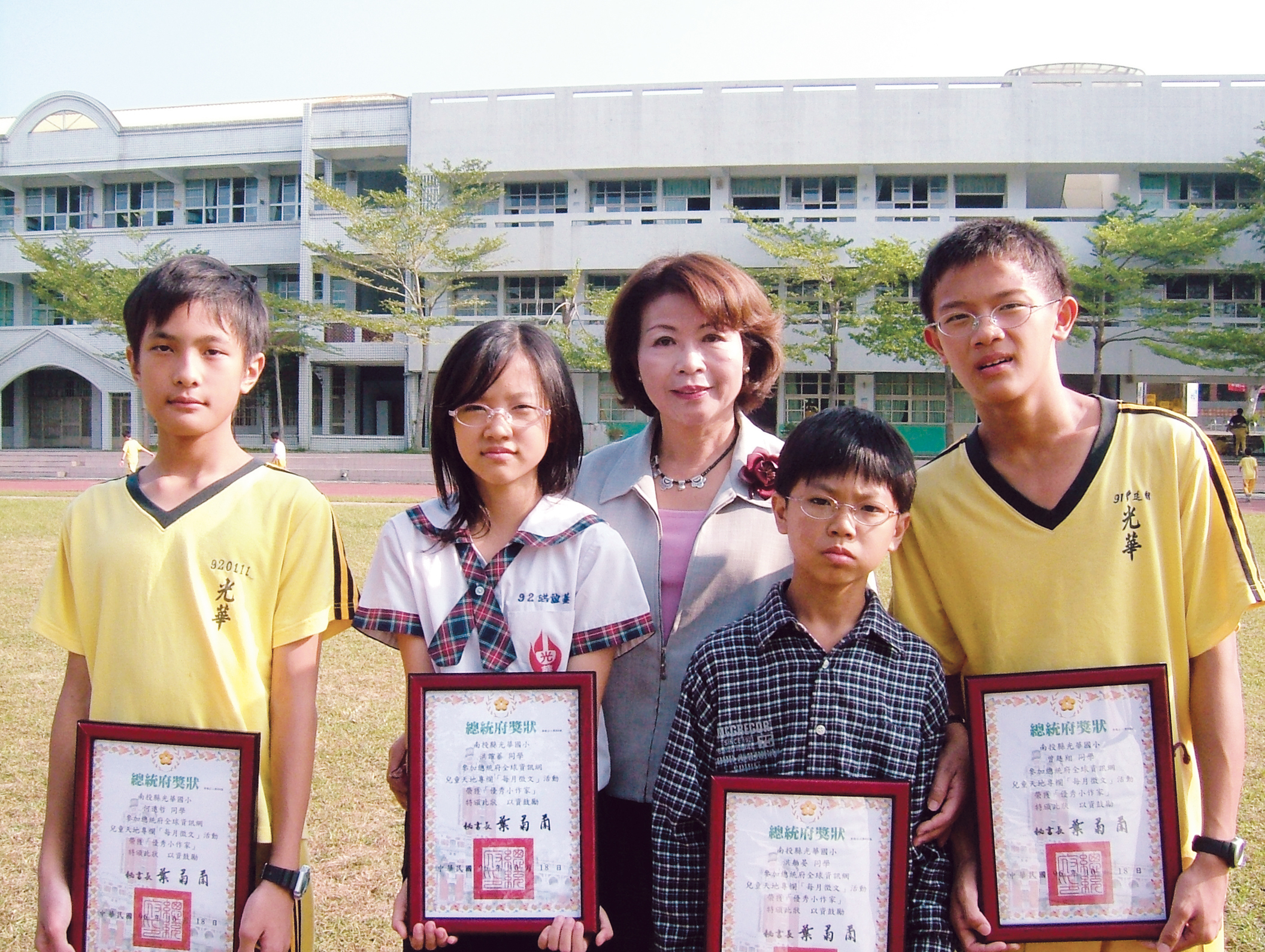 從新生入學的聰(蔥)明平(蘋)安門,到運動會的聖火薪火相傳;從直笛比賽到班際體育競賽,每位學生均須學會一項運動技能與樂器;從校慶運動會到校慶藝文展,每位學生都會參與,且允文允武;屬於光華的點點滴滴,是多到數不完的。這傲人的成就早已植入大家的心田,變成生活上健康快樂的一部分,在來年也會變成回憶的一部分。創校六十週年,一甲子的歲月,記錄著太多人的生活點點滴滴,不管是「中興一校」,或是「光華國小」,都以光華人為榮。這一所全方位的學校,也將繼續向前航行,再創更輝煌的光華史。 |